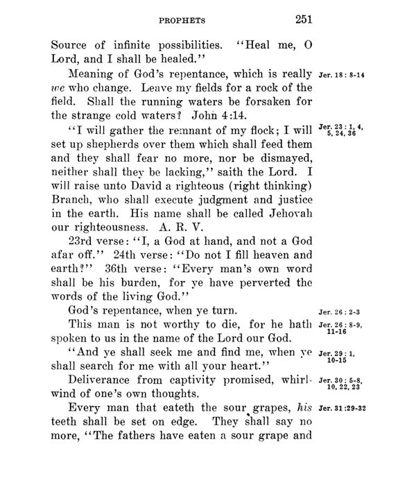 23rd verse: "I, a God at hand, and not a God afar off." 24th verse: "Do not I fill heaven and earth?" 36th verse: "Every man's own word shall be his burden, for ye have perverted the words of the living God."