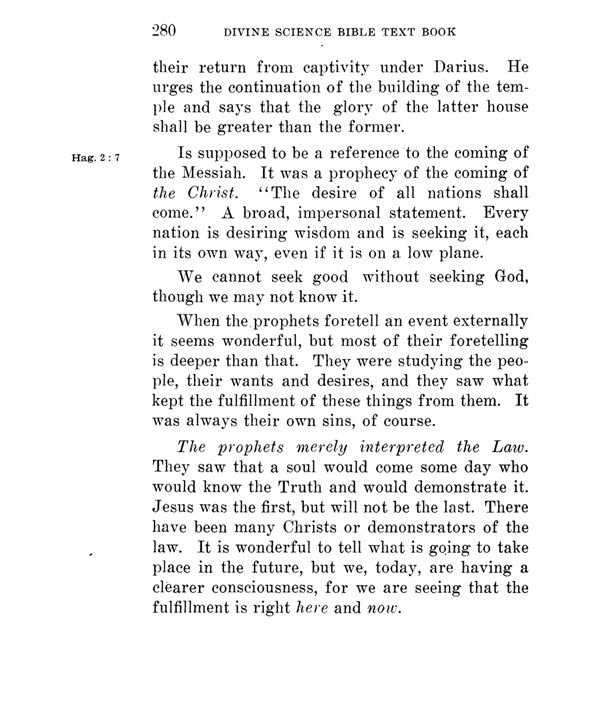 They saw that a soul would come some day who would know the Truth and would demonstrate it. Jesus was the first, but will not be the last. There have been many Christs or demonstrators of the law. It is wonderful to tell what is going to take place in the future, but we, today, are having a clearer consciousness, for we are seeing that the fulfillment is right here and now
