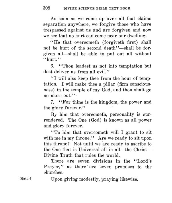 There are seven divisions in the "Lord's Prayer," as there are seven promises to the churches.