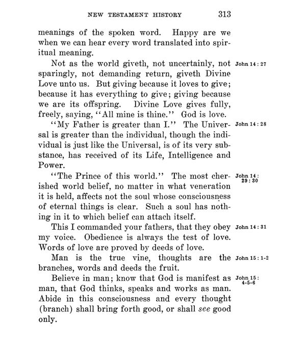 "My Father is greater than I." The Universal is greater than the individual, though the individual is just like the Universal, is of its very substance, has received of its Life, Intelligence and Power.