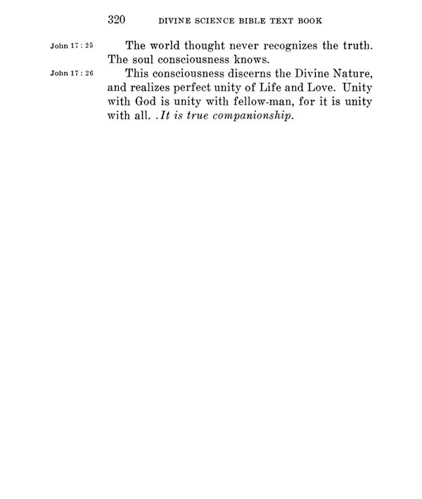 This consciousness discerns the Divine Nature, and realizes perfect unity of Life and Love. Unity with God is unity with fellow-man, for it is unity with all. It is true companionship.
