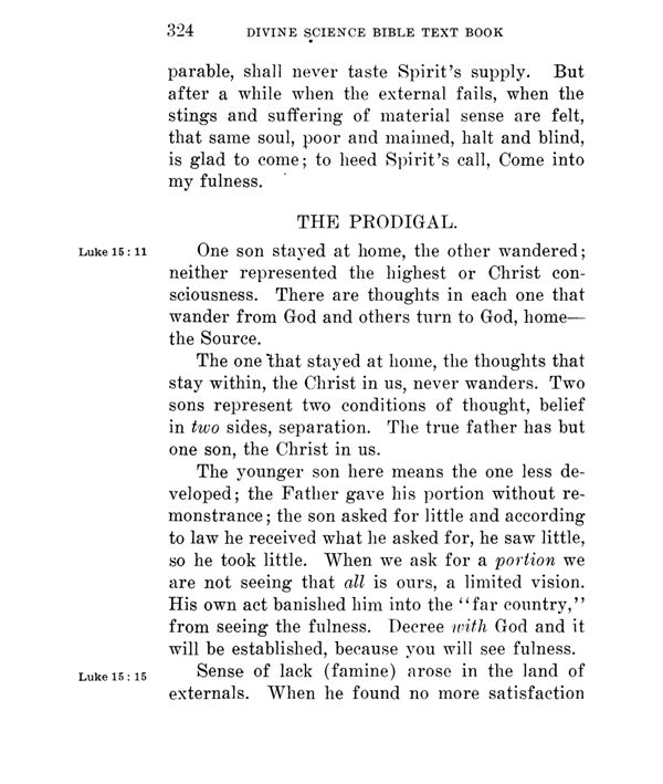 parable, shall never taste Spirit's supply, But after a while when the external fails, when the stings and suffering of material sense are felt, that same soul, poor and maimed, halt and blind, is glad to come to heed Spirit's call, Come into my fulness.