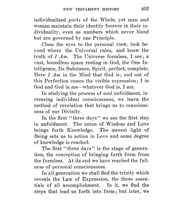 individualized parts of the Whole, yet man and woman maintain their identity forever in their individuality, even as numbers which never blend but are governed by one Principle.