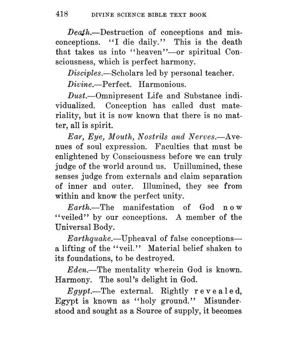 Dust. --- Omnipresent Life and Substance individualized. Conception has called dust materiality, but it is now known that there is no matter, all is spirit.