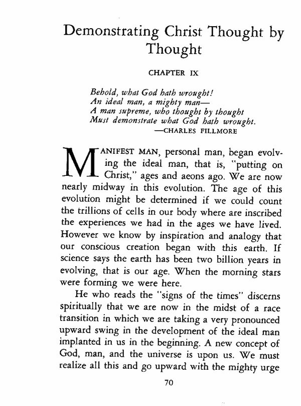 Behold, what God hath wrought! An ideal man, a mighty man--A man supreme, who thought by thought Must demonstrate what God hath wrought.--CHARLES FILLMORE