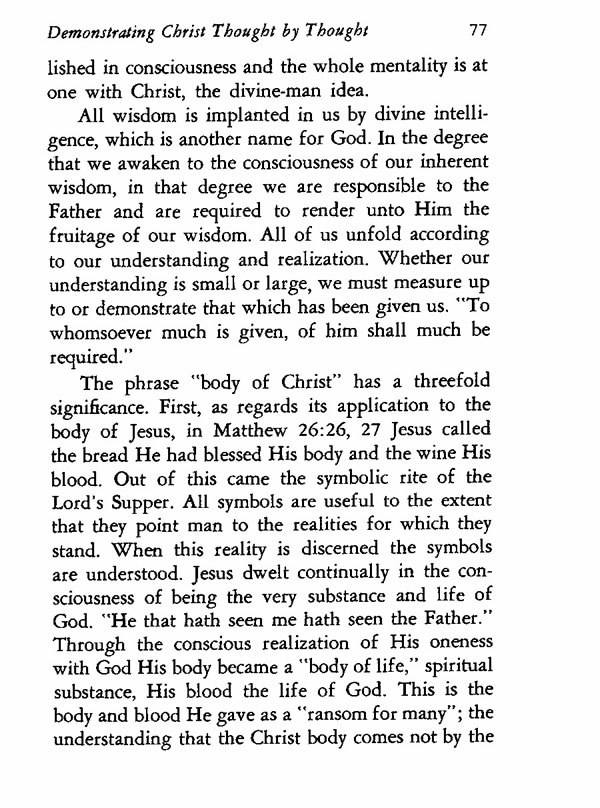 in consciousness and the whole mentality is at one with Christ, the divine-man idea.
