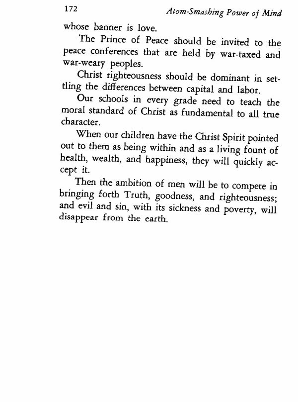Then the ambition of men will be to compete in bringing forth Truth, goodness, and righteousness; and evil and sin, with its sickness and poverty, will disappear from the earth.