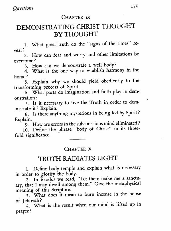 Contents - Foreword - The Atomic Age - Restorative Power of the Spirit - Spiritual Obedience - I AM or Superconsciousness - Day of Judgment - Thou Shalt Decree a Thing - Thinking in the Fourth Dimension - Is This God's World? - Demonstrating Christ Thought by Thought - Truth Radiates Light - The Only Mind - Contact with the Christ Mind - Metaphysics of Shakespeare - The Body - Faith Precipitations - The Seed Is the Word - Resurrecting Power of the Word - Transfiguration - End of the Age - Question Helps - Index