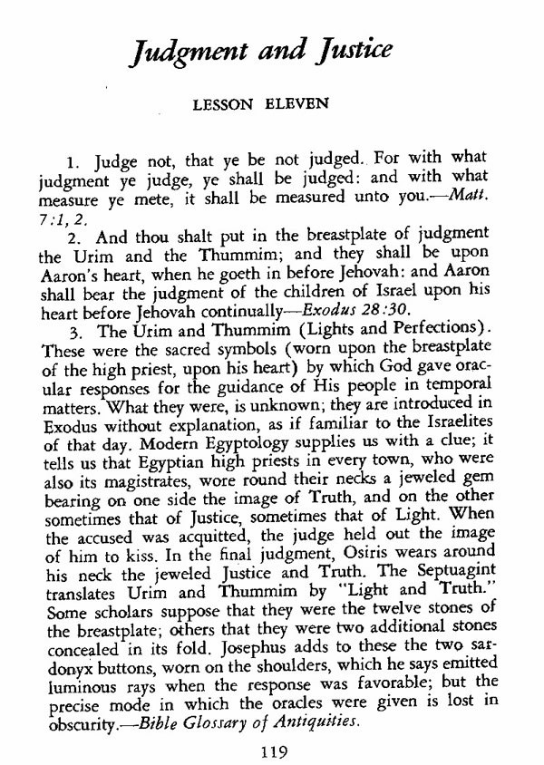 2. "And thou shalt put in the breastplate of judgment the Urim and the Thummim; and they shall be upon Aaron's heart, when he goeth in before Jehovah: and Aaron shall bear the judgment of the children of Israel upon his heart before Jehovah continually".-Ex. 28:30.