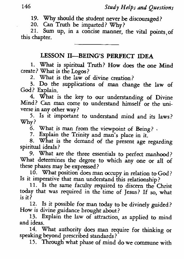 Lesson Two--Being's Perfect Idea