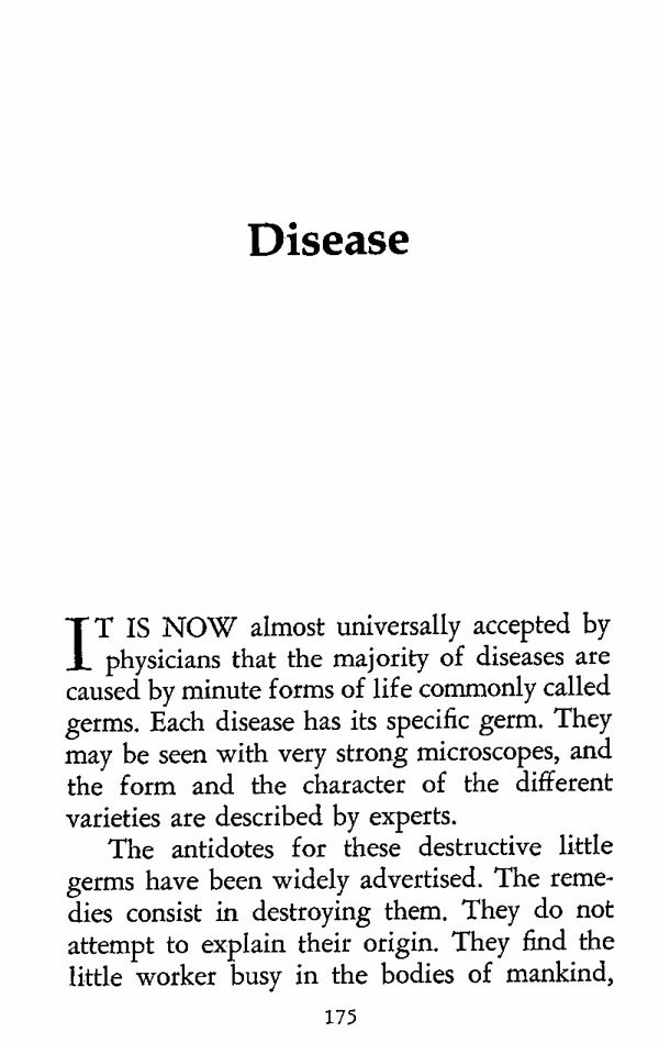 IT IS NOW almost universally accepted by physicians that the majority of diseases are caused by minute forms of life commonly called germs. Each disease has its specific germ. They may be seen with very strong microscopes, and the form and the character of the different varieties are described by experts.