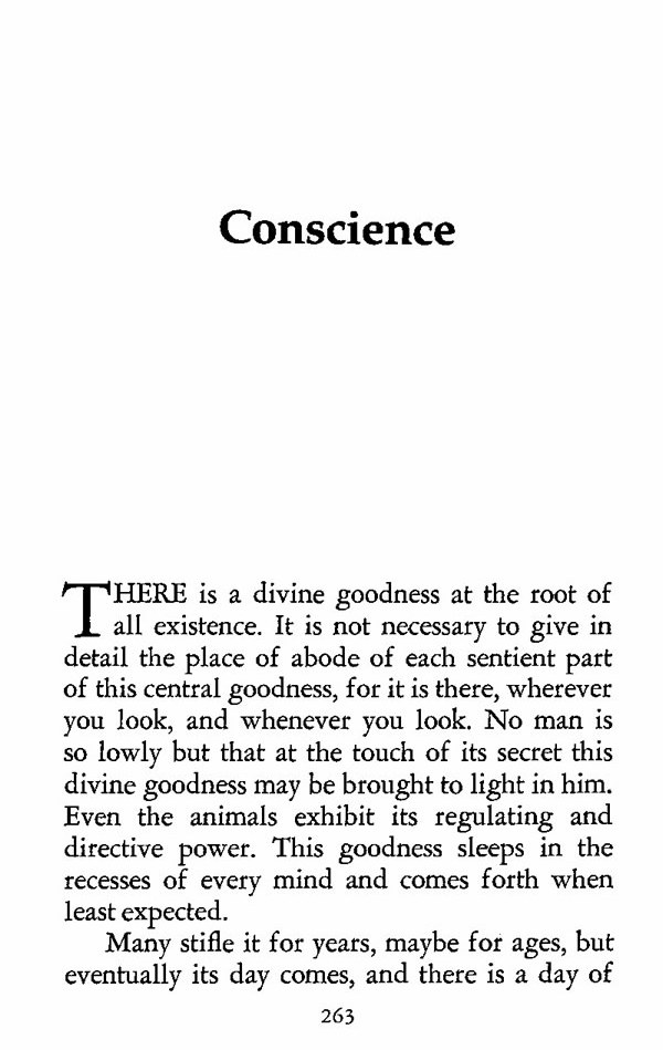 THERE is a divine goodness at the root of all existence. It is not necessary to give in detail the place of abode of each sentient part of this central goodness, for it is there, wherever you look, and whenever you look. No man is so lowly but that at the touch of its secret this divine goodness may be brought to light in him. Even the animals exhibit its regulating and directive power. This goodness sleeps in the recesses of every mind and comes forth when least expected.