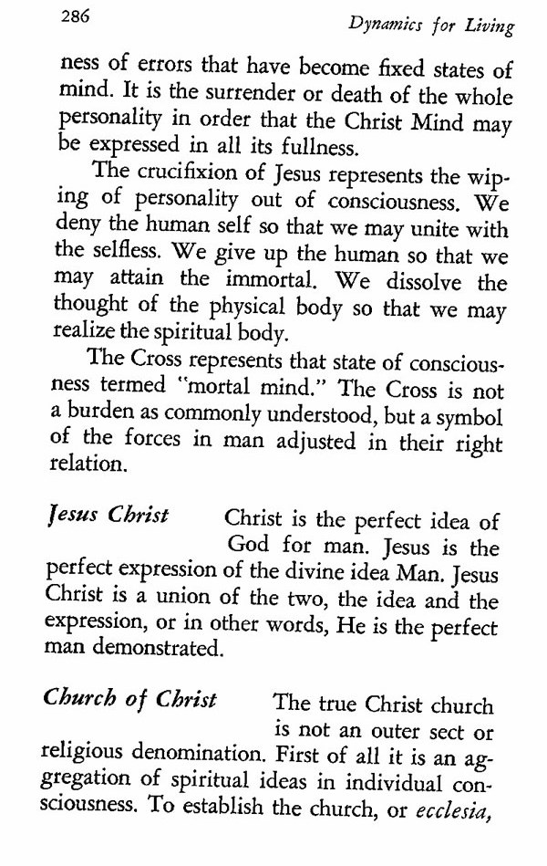 of errors that have become fixed states of mind. It is the surrender or death of the whole personality in order that the Christ Mind may be expressed in all its fullness.