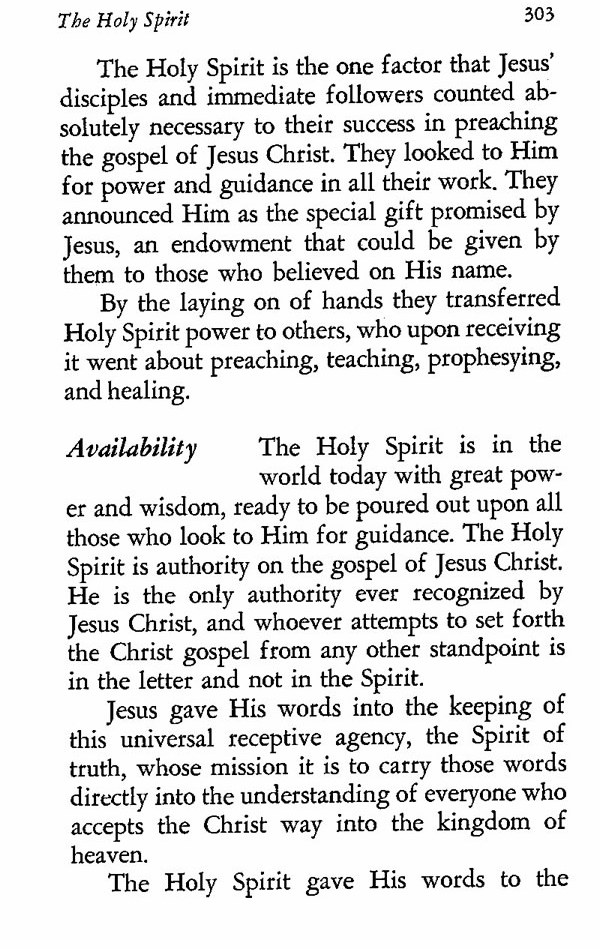 The Holy Spirit is in the world today with great power and wisdom, ready to be poured out upon all those who look to Him for guidance. The Holy Spirit is authority on the gospel of Jesus Christ. He is the only authority ever recognized by Jesus Christ, and whoever attempts to set forth the Christ gospel from any other standpoint is in the letter and not in the Spirit.