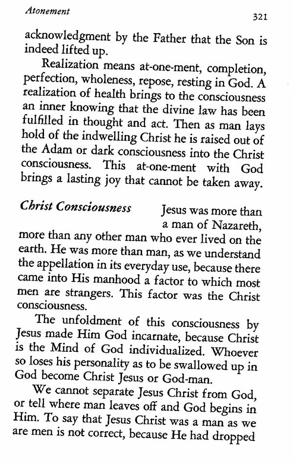 The unfoldment of this consciousness by Jesus made Him God incarnate, because Christ is the Mind of God individualized. Whoever so loses his personality as to be swallowed up in God become Christ Jesus or God-man.