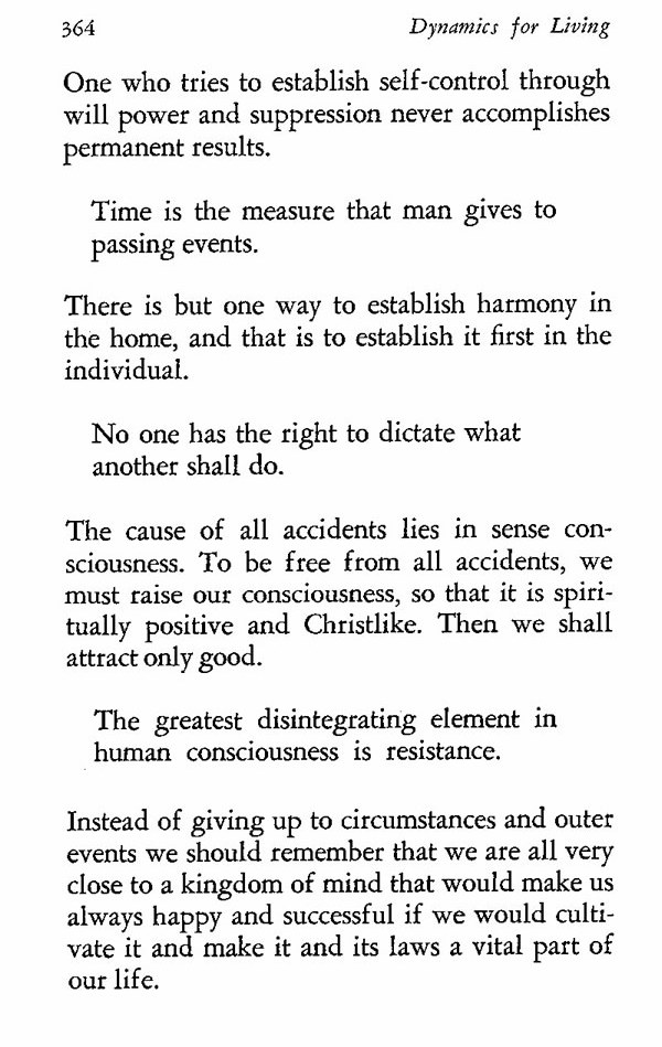 The cause of all accidents lies in sense consciousness. To be free from all accidents, we must raise our consciousness, so that it is spiritually positive and Christlike. Then we shall attract only good.