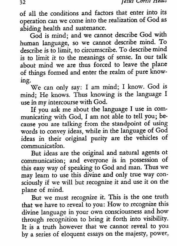 But ideas are the original and natural agents of communication; and everyone is in possession of this easy way of speaking to God and man. Thus we may learn to use this divine and only true way consciously if we will but recognize it and use it on the plane of mind.
