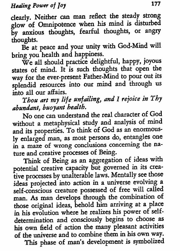 clearly. Neither can man reflect the steady strong glow of Omnipotence when his mind is disturbed by anxious thoughts, fearful thoughts, or angry thoughts.