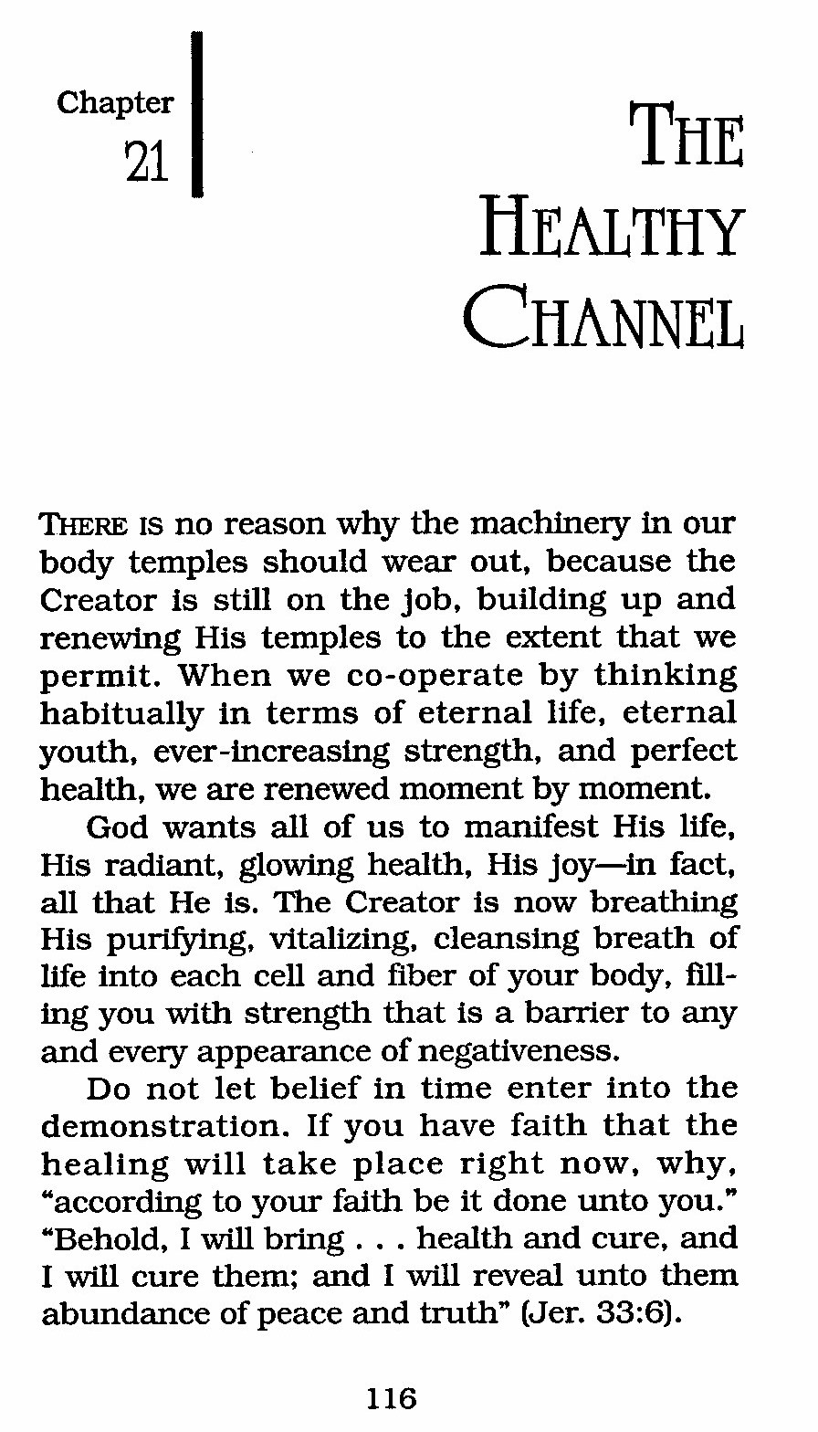 Do not let belief in time enter into the demonstration. If you have faith that the healing will take place right now, why, "according to your faith be it done unto you." "Behold, I will bring . . . health and cure, and I will cure them; and I will reveal unto them abundance of peace and truth" (Jer. 33:6).