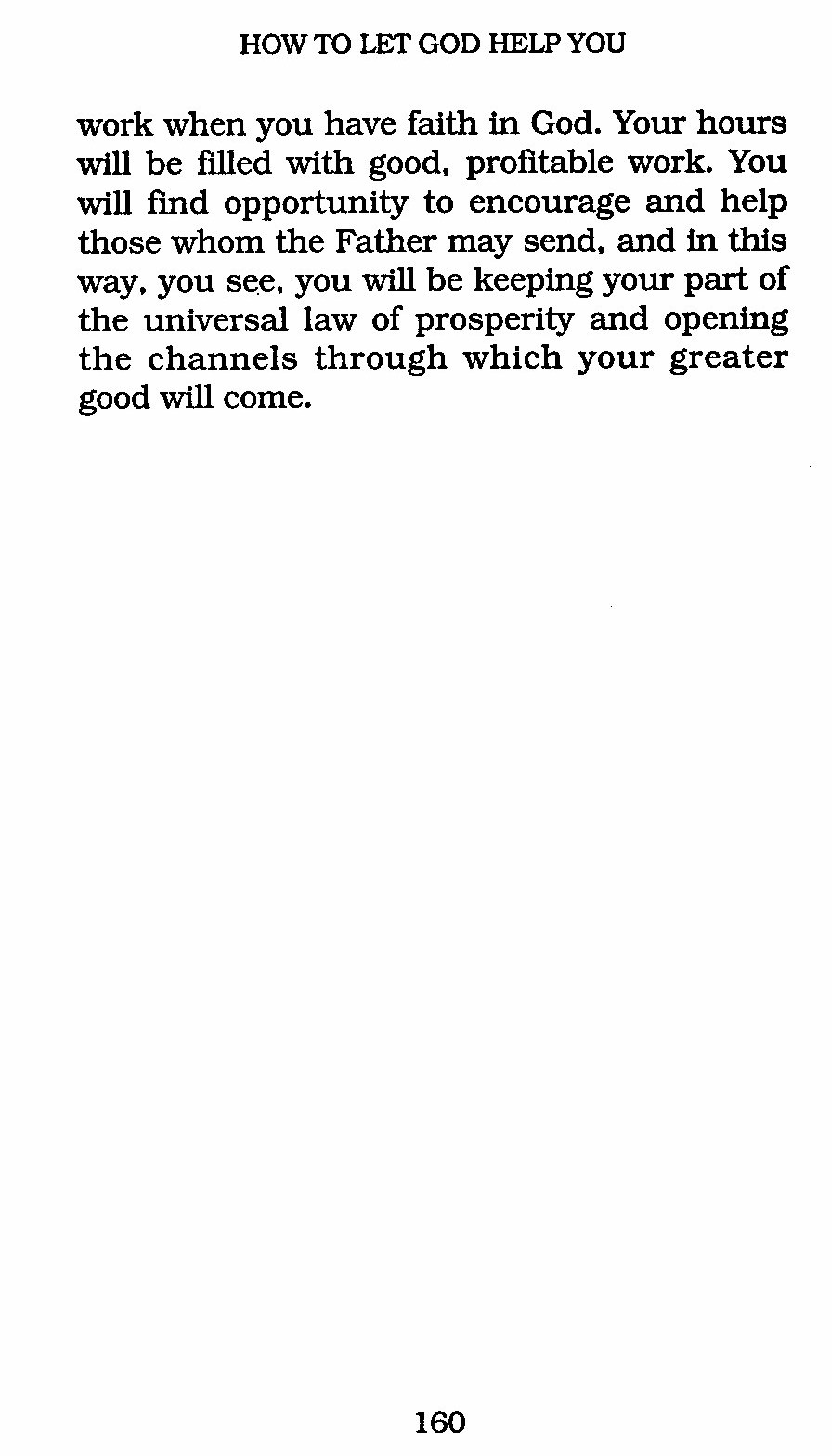 work when you have faith in God. Your hours will be filled with good, profitable work. You will find opportunity to encourage and help those whom the Father may send, and in this way, you see, you will be keeping your part of the universal law of prosperity and opening the channels through which your greater good will come.