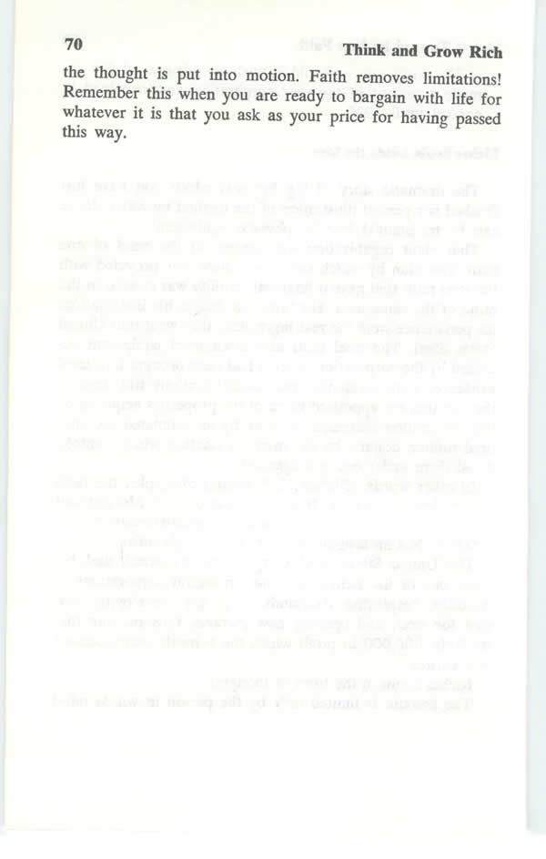 Let us here offer suggestions for the effective use of concentration. When you begin to carry out the first of the six steps, which instructs you to "fix in your own mind the EXACT amount of money you desire," hold your thoughts on that amount of money by CONCENTRATION, or fixation of attention, with your eyes closed, until you can ACTUALLY SEE the physical appearance of the money. Do this at least once each day. As you go through these exercises, follow the instructions given in the chapter on FAITH, and see yourself actually IN POSSESSION OF THE MONEY!