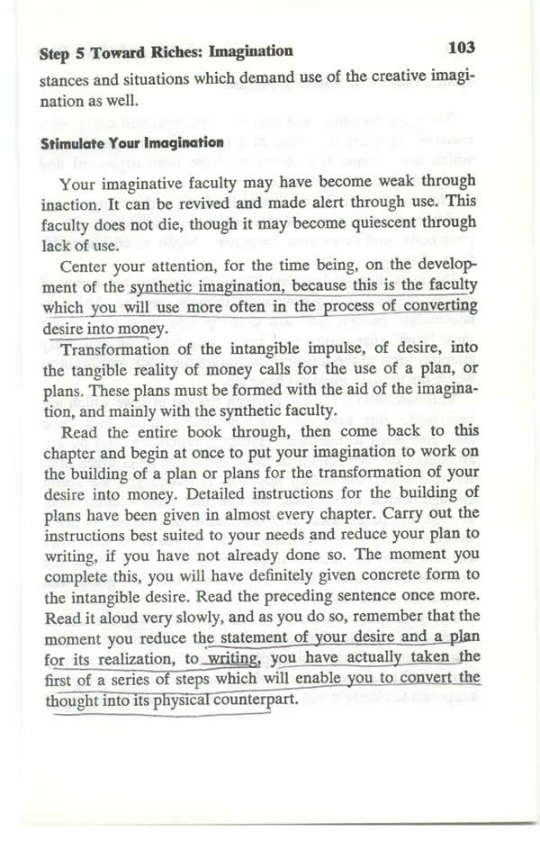 In Chapter two, you were instructed to take six definite, practical steps, as your first move in translating the desire for money into its monetary equivalent. One of these steps is the formation of a DEFINITE, practical plan, or plans, through which this transformation may be made.