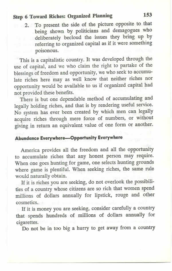 Contents - What Do You Want Most? - Tributes From Great American Leaders - Publisher's Preface - Author's Preface - Introduction - Desire - Faith - Auto-Suggestion - Specialized Knowledge - Imagination - Organized Planning - Decision - Persistence - Power of The Master Mind - The Mystery of Sex Transmutation - Subconscious Mind - Brain - Sixth Sense - How To Outwit The Six Ghosts of Fear