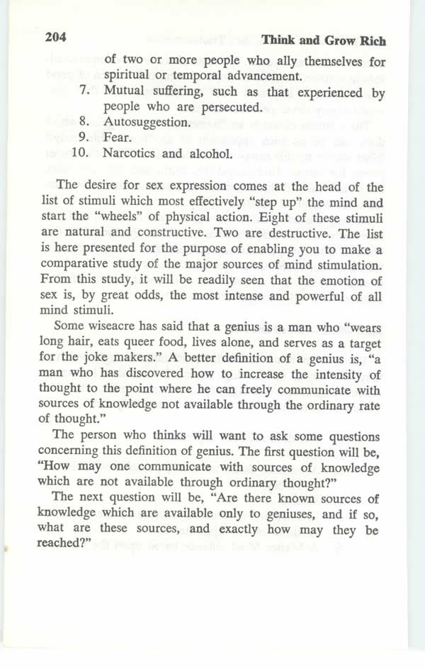 In connection with the statement in the preceding paragraph, compare, and consider the description of the Creative Imagination, as outlined in the chapter on Imagination. The Creative Imagination is the "receiving set" of the brain, which receives thoughts, released by the brains of others. It is the agency of communication between one's conscious, or reasoning mind, and the four sources from which one may receive thought stimuli.