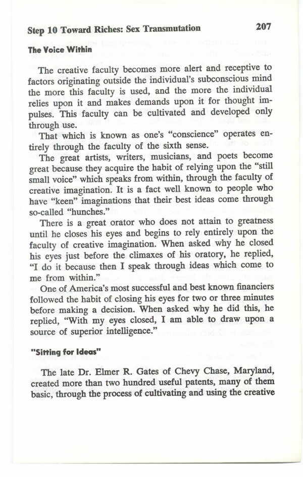 Contents - What Do You Want Most? - Tributes From Great American Leaders - Publisher's Preface - Author's Preface - Introduction - Desire - Faith - Auto-Suggestion - Specialized Knowledge - Imagination - Organized Planning - Decision - Persistence - Power of The Master Mind - The Mystery of Sex Transmutation - Subconscious Mind - Brain - Sixth Sense - How To Outwit The Six Ghosts of Fear