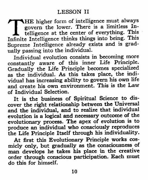 Contents - The Universe is a Spiritual System - The higher ... must always govern the lower - Everything ... rises out of One fundamental Unity - conscious mind ... subjective reaction - creative Subjectivity ... all-permeating Creative Medium - We must learn to trust in the law of growth - The Universal Spirit - No matter how high we go in the spiritual realm - Relative First Cause - Nothing is more important - The will is a directive power - The basis of all mental healing