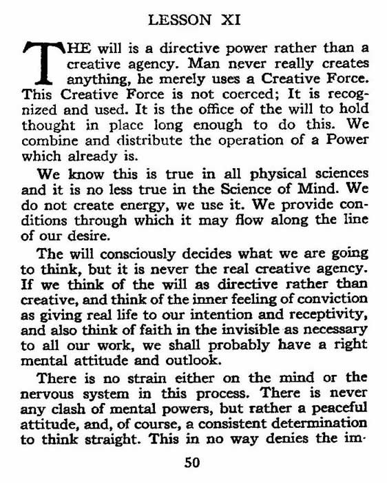 The will is a directive power rather than a creative agency. Man never really creates anything; he merely uses a Creative Force.