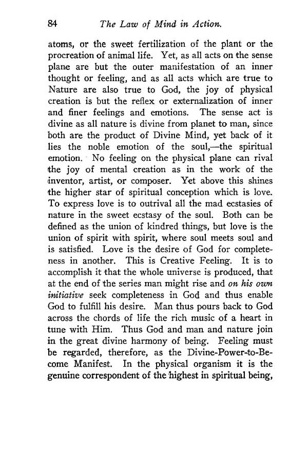 Method of Reading and Study - Metaphysics - The One Law - How to Use the Law - Spirit - Creative Mind in the Individual - Creative Mind in the Universal - Man ~ Master on the Planet - Matter, or Thought in Form - The Creative Word - The Outer and the Inner Universe - The Infinite Self - Law of Attraction - Choosing the Law - Feeling and Emotions - Instinct to Create - Our Immaculate Conceptions - Intensified Consciousness - Is Evil a Power? - The Thing I Fear - Nothing Matters - Courage Regained - Creative Imagination - One-Pointedness - Faith, An Attitude of Mind - Mental Poise - The Will To Win - Creating Atmospheres and Prosperity - The Personal Spirit - Intuition and Ideation - Ultimate Reality & the Fatherhood of God - The Supreme Affirmation - Use of Formulas - How to Help Others - Whom to Treat - How Long to Treat - What Kind of Cases to Be Treated - My Good Night Prayer - Contents -
