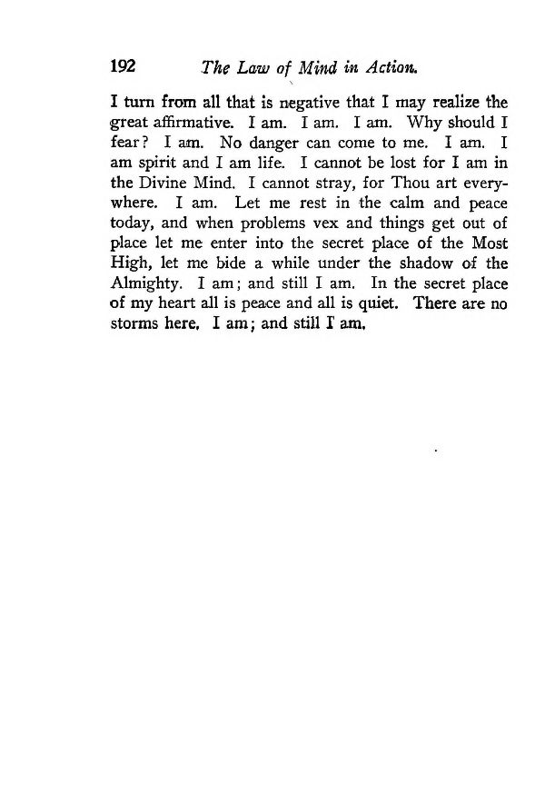Method of Reading and Study - Metaphysics - The One Law - How to Use the Law - Spirit - Creative Mind in the Individual - Creative Mind in the Universal - Man ~ Master on the Planet - Matter, or Thought in Form - The Creative Word - The Outer and the Inner Universe - The Infinite Self - Law of Attraction - Choosing the Law - Feeling and Emotions - Instinct to Create - Our Immaculate Conceptions - Intensified Consciousness - Is Evil a Power? - The Thing I Fear - Nothing Matters - Courage Regained - Creative Imagination - One-Pointedness - Faith, An Attitude of Mind - Mental Poise - The Will To Win - Creating Atmospheres and Prosperity - The Personal Spirit - Intuition and Ideation - Ultimate Reality & the Fatherhood of God - The Supreme Affirmation - Use of Formulas - How to Help Others - Whom to Treat - How Long to Treat - What Kind of Cases to Be Treated - My Good Night Prayer - Contents -