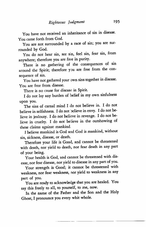Foreword - Statement of Being - Denials of Science - Affirmations of Science - Foundation of Faith - The Word of Faith - Secret of the Lord - The Spring of Life - Rending the Veil - Righteous Judgment - Fearlessness - The Way of Wisdom - The Crown of Glory - Contents - Index