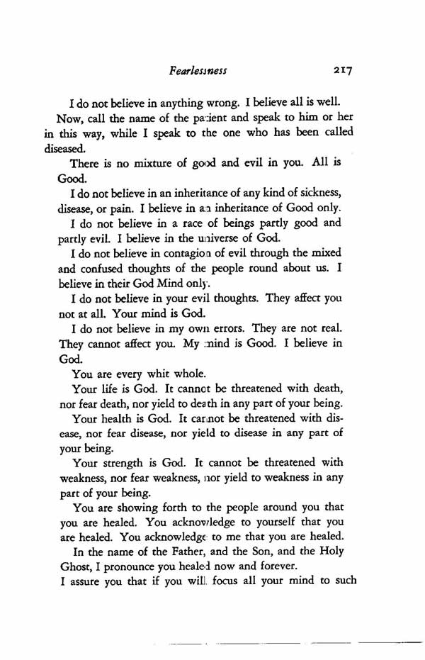 I do not believe in contagion of evil through the mixed and confused thoughts of the people round about us. I believe in their God Mind only.