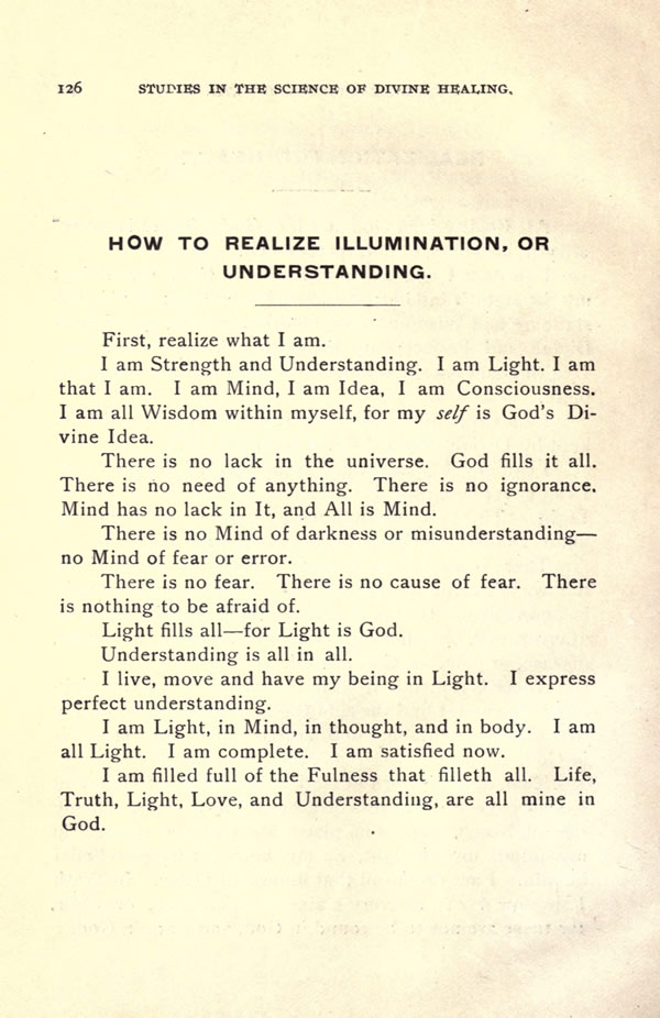 I am Strength and Understanding. I am Light. I am that I am. I am Mind, I am Idea, I am Consciousness. I am all Wisdom within myself, for my self is God's Divine Idea.