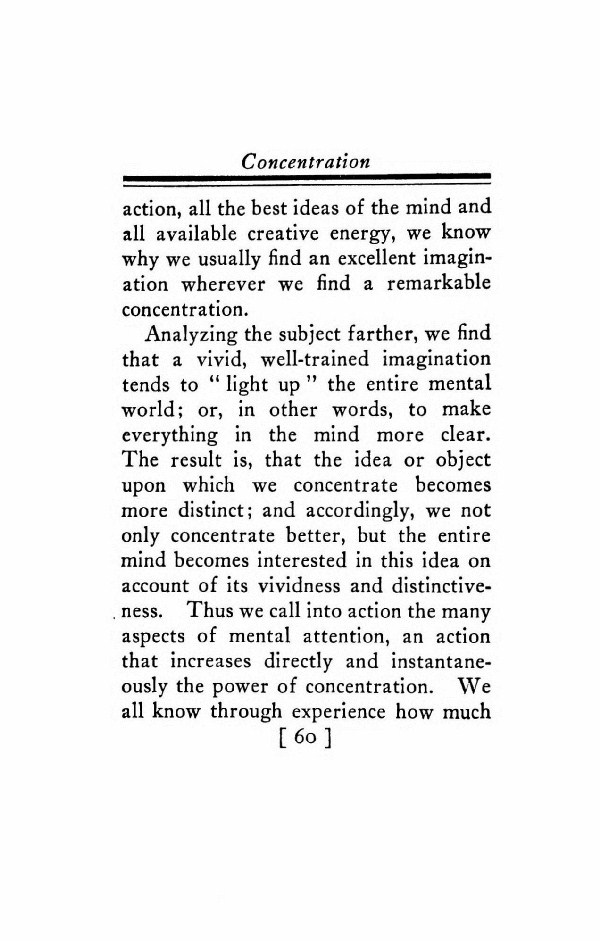 action, all the best ideas of the mind and all available creative energy, we know why we usually find an excellent imagination wherever we find a remarkable concentration.