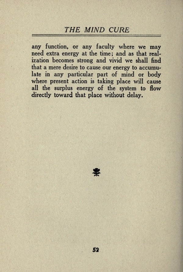 any function, or any faculty where we may need extra energy at the time; and as that realization becomes strong and vivid we shall find that a mere desire to cause our energy to accumulate in any particular part of mind or body where present action is taking place will cause all the surplus energy of the system to flow directly toward that place without delay.