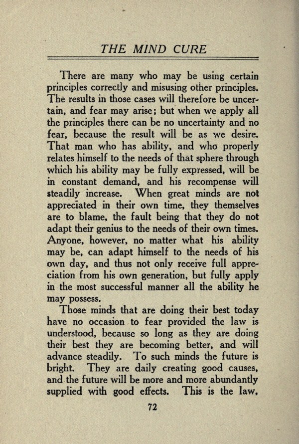 Contents - Cure of Nervousness - Another function of the nervous system - When we analyze - An important essential in the cure - To secure abundance of power - following exercises or methods - Good Health for the Mind - Cure of Despondency - The second form of despondency - Another cause of misdirected emotion - Prevention of Mental Depression - How to Remove Fear - When we know - laws of cause and effect