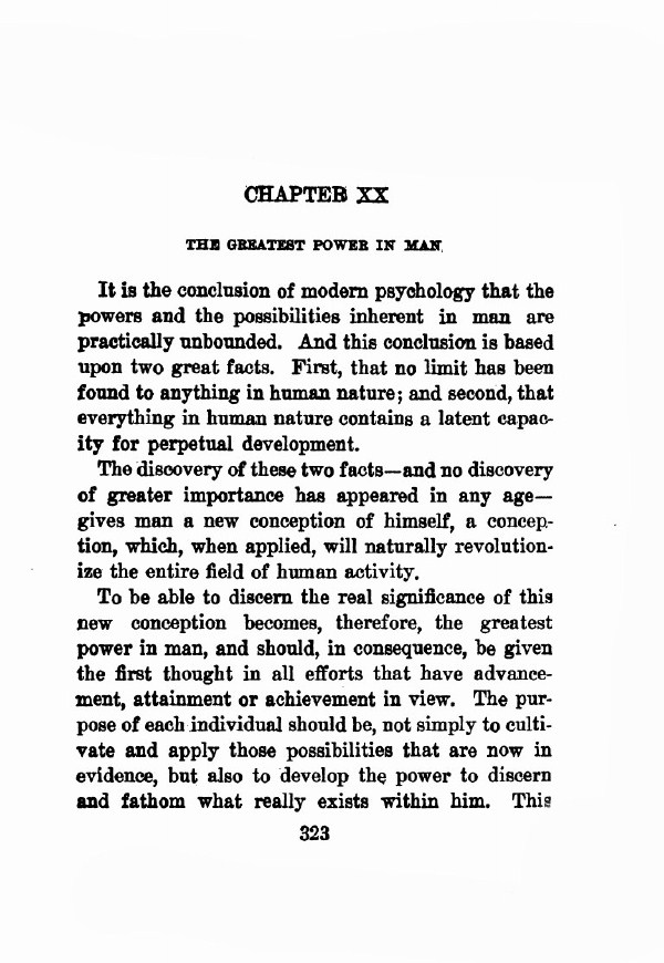 Contents - Foreword - Ruling Principle of Man - How We Govern The Forces We Possess - Use of Mind In Practical Action - Forces of The Subconscious - Training the Subconscious for Practical Results - Power of Subjective Thought - How Man Becomes What He Thinks - Art of Changing For The Better - He Can Who Thinks He Can - How We Secure What We Persistently Desire - Concentration And The Power Back of the Suggestion - Development of the Will - Building of a Great Mind - How Character Determines Constructive Action - Art of Building Character - Creative Forces in Man - Building Power of Constructive Speech - Imagination and the Master Mind - Higher Forces in Man - Greatest Power in Man -