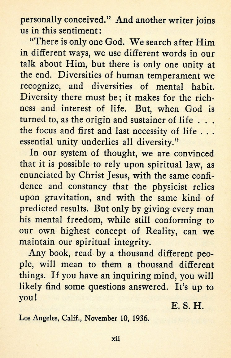Contents - Preface - Introduction, by W. L. Barth - God Loves A Prosperous Man - What Is Your Secret Fear? - "I Do Not.Like To Believe That" - When Is Man Divine? - Why Are You Unattractive? - Am I "Good" Enough To Be A Practitioner? - "Whom Say Ye That I Am?" - What About Your "Investments"? - Things For Which We Cannot Pray - Man's Colossal Stupidity