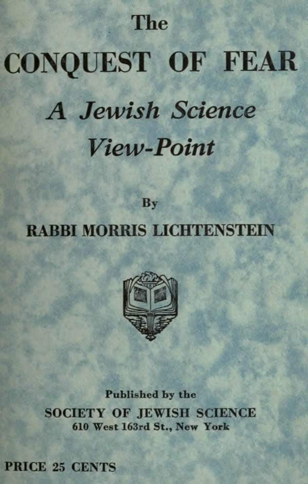 Contents - The Controlling Factor - Beginnings of Fear - Education Through Fear - Religion and Fear - Fear of Public Opinion - Fear of Illness - The Viewpoint of Jewish Science - Services