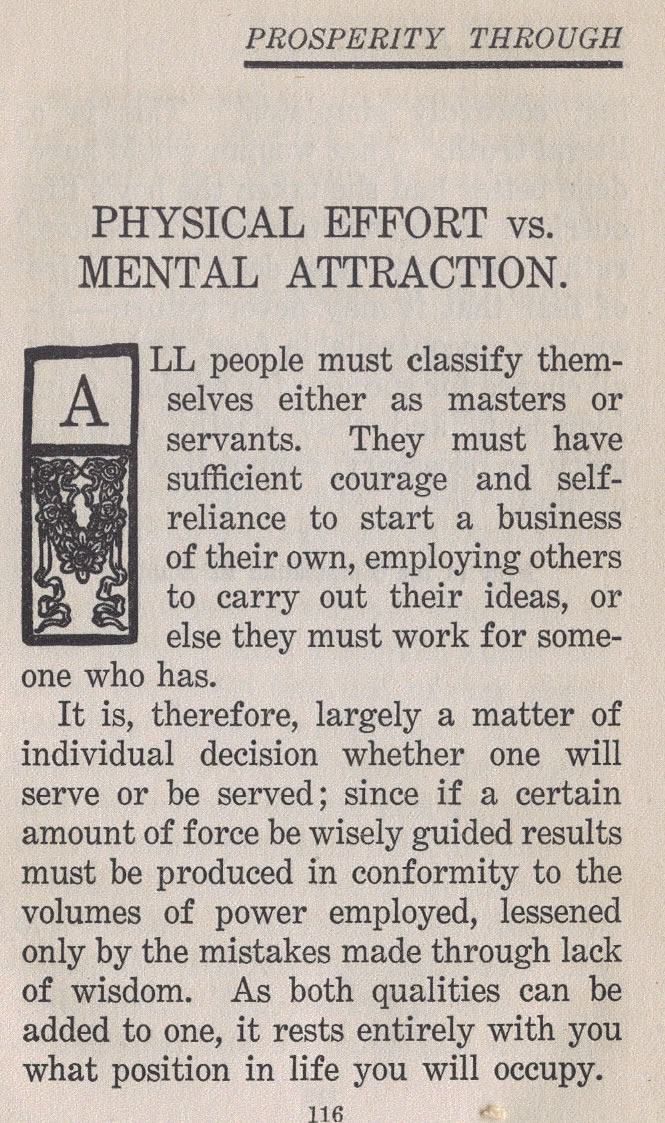 It is, therefore, largely a matter of individual decision whether one will serve or be served; since if a certain amount of force be wisely guided results must be produced in conformity to the volumes of power employed, lessened only by the mistakes made through lack of wisdom. As both qualities can be added to one, it rests entirely with you what position in life you will occupy.