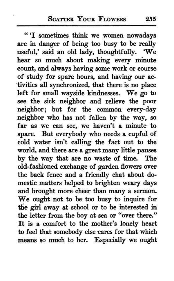 An Invitation - Try Love's Way - The Greatest Thing in the World - Making Life a Song - The Dream of Brotherhood - Driving Away What We Long For Most - Employers and Employers - Spite Fences - Work and Happiness - Practising Love's Way - Training the Child - How to Lighten Your Words - Survival Value - The Miracle Worker - Our Little Brothers and Sisters - The Thing That Makes a Home - "Stranger, Why Should I NOT Speak to you?" - "I Serve the Strongest" - The Daily Orientation - Scatter Your Flowers As You Go - Love Letters From God - The Harmony Bath - Heroism at Home - What the Bee Teaches Us - Love's Way and Christmas Giving - Contents -