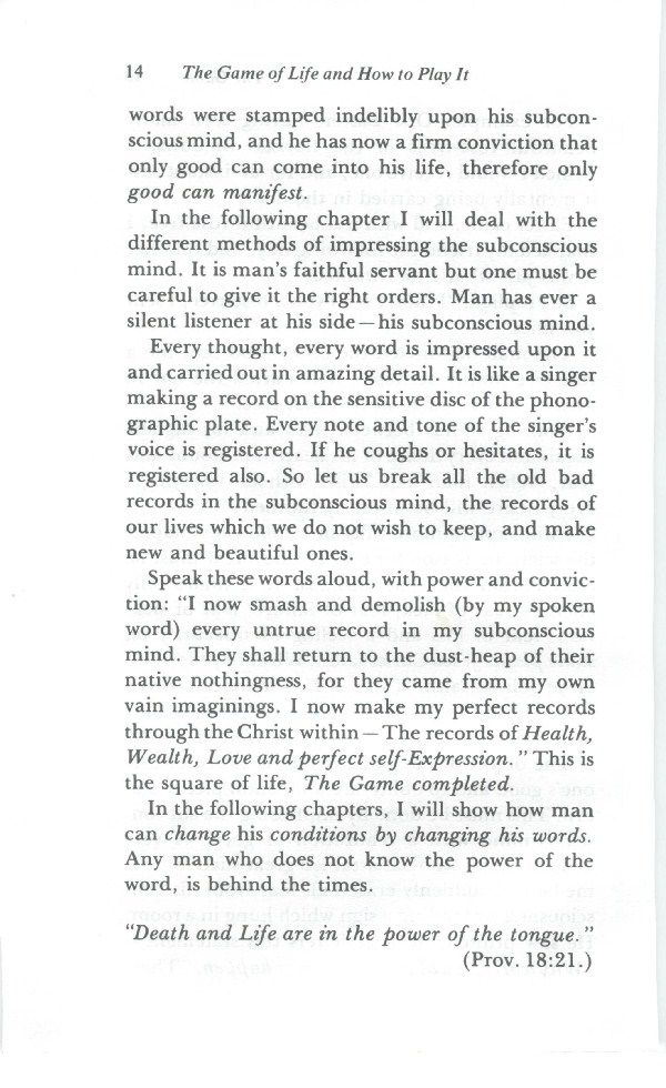 In the following chapters, I will show how man can change his conditions by changing his words. Any man who does not know the power of the word, is behind the times.