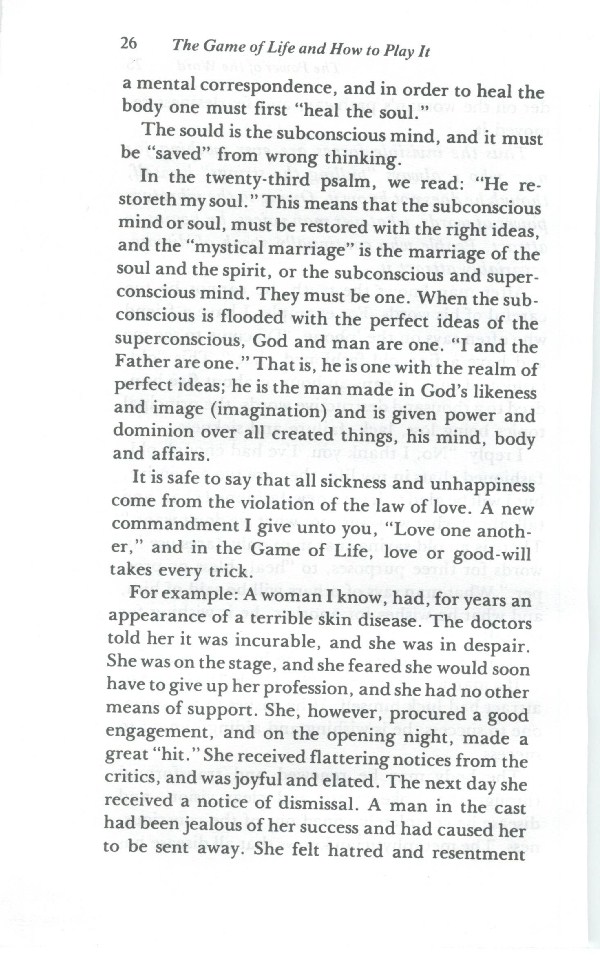 The Game - Law of Prosperity - Power of the Word - Law of Nonresistance - Law of Karma and the Law of Forgiveness - Casting the Burden (Impressing the Subconscious) - Love - Intuition or Guidance - Perfect Self-Expression or the Divine Design - Denials and Affirmations - Contents -