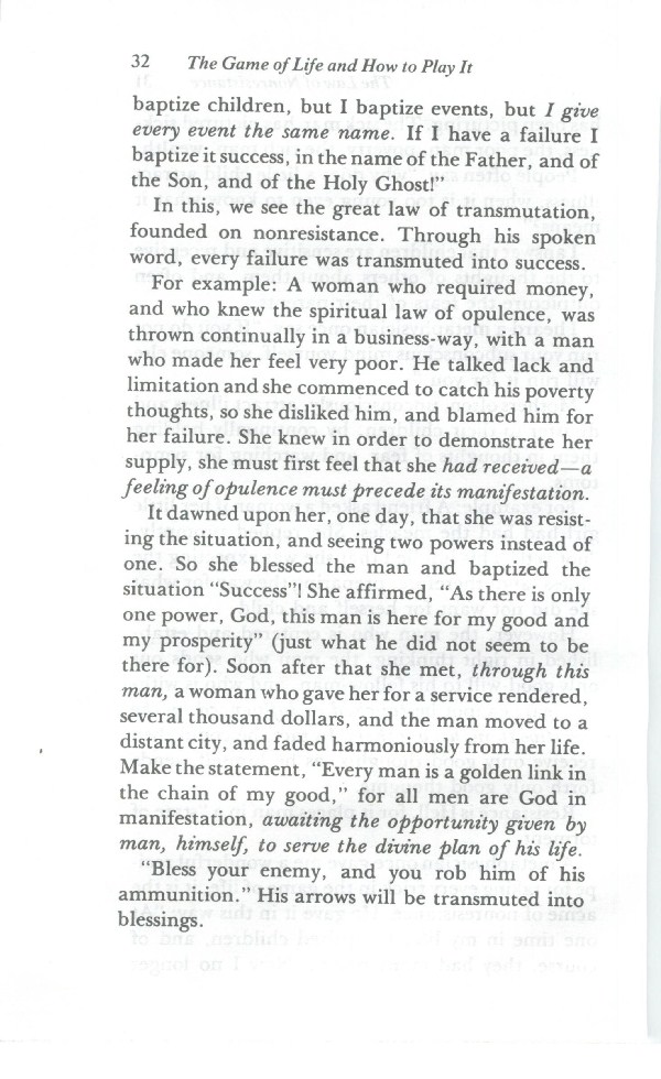The Game - Law of Prosperity - Power of the Word - Law of Nonresistance - Law of Karma and the Law of Forgiveness - Casting the Burden (Impressing the Subconscious) - Love - Intuition or Guidance - Perfect Self-Expression or the Divine Design - Denials and Affirmations - Contents -
