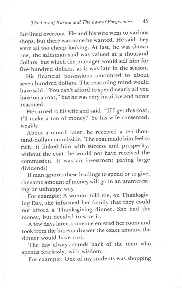 His financial possessions amounted to about seven hundred dollars. The reasoning mind would have said, "You can't afford to spend nearly all you have on a coat," but he was very intuitive and never reasoned.