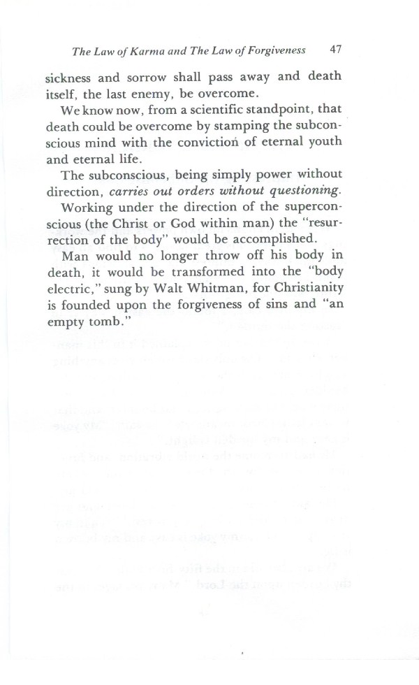We know now, from a scientific standpoint, that death could be overcome by stamping the subconscious mind with the conviction of eternal youth and eternal life.