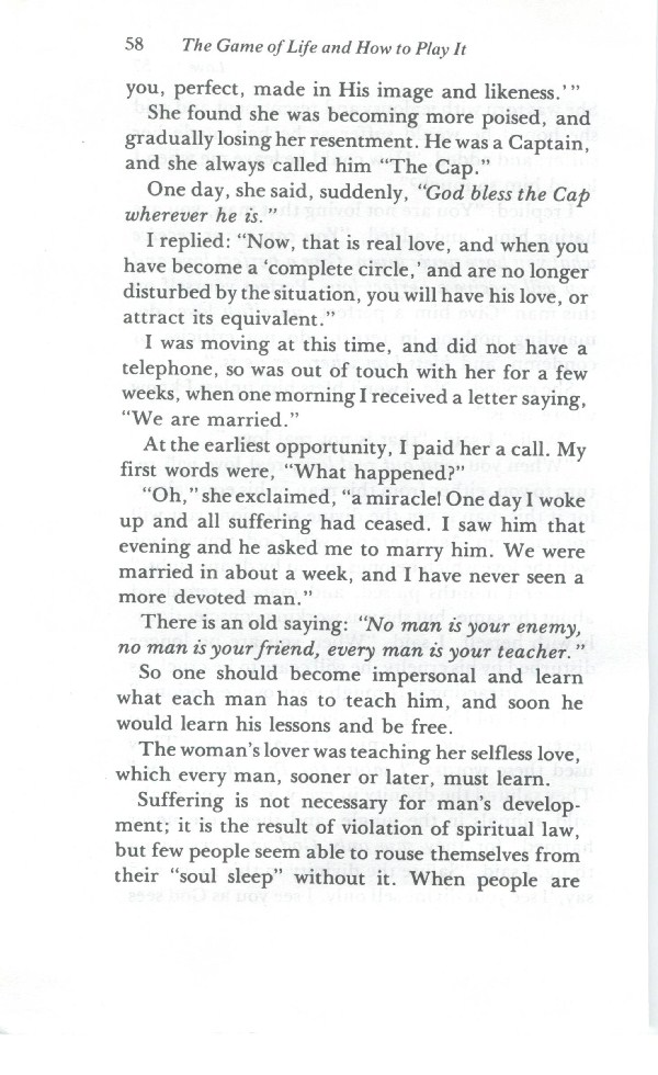 I replied: "Now that is real love, and when you have become a 'complete circle,' and are no longer disturbed by the situation, you will have his love, or attract its equivalent."